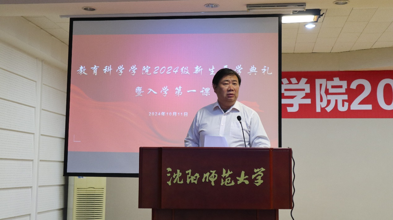 2024年10月11日下午五点半在图书馆五楼报告厅举办了royal皇家88平台2024级新生开学典礼暨开学第一课。出席本次开学典礼的有院长朴雪涛,院副院长高军、王江洋,院党委书记张野,院党委副书记郑欣,应用心理学教师代表周帆博士,院团委书记、本科生党支部书记兼辅导员刘爽,组织员兼研究生辅导员孔羽,本科生辅导员耿靖雯,以及全体2024级新生和研究生。